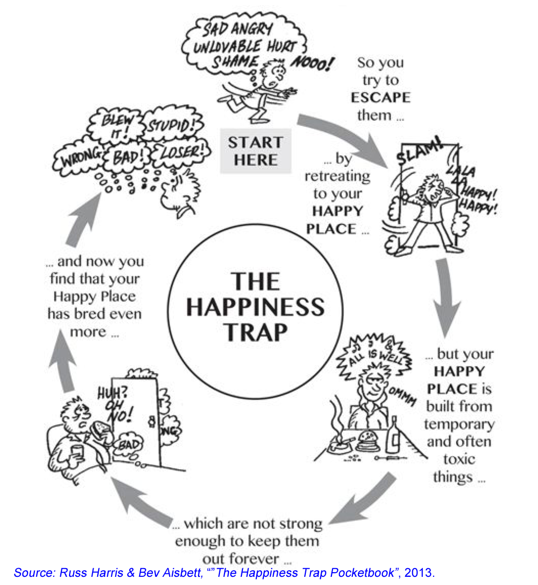 Since happiness feels so good, we want to chase it. But a life spent chasing after happiness is not only unsatisfactory – it backfires. The harder we try to feel good, the more worried or sad we become when we can’t maintain those feelings.
